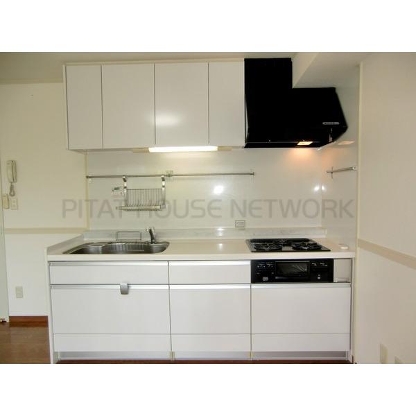 - システムキッチン・3口コンロでグリル付きです。