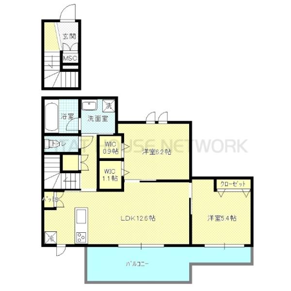 | 間取り詳細 | LDK12.6帖 洋5.4帖 洋6.2帖 | ||||